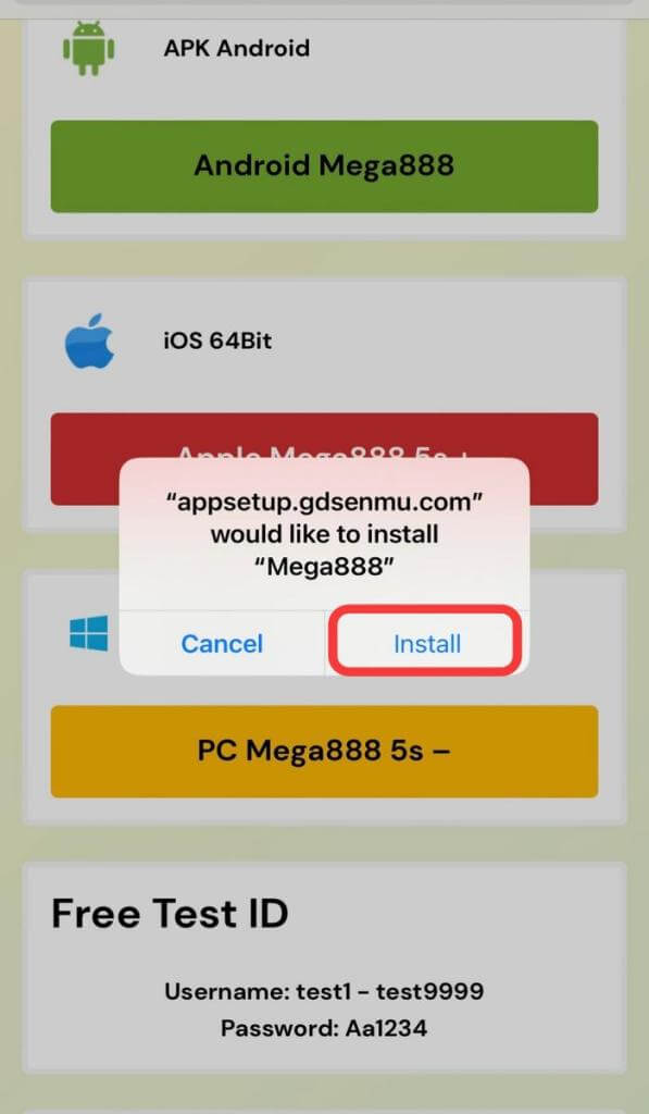 Untuk pemasangan android kita boleh menggunakan muat turun dan pasang mega 888 apk.