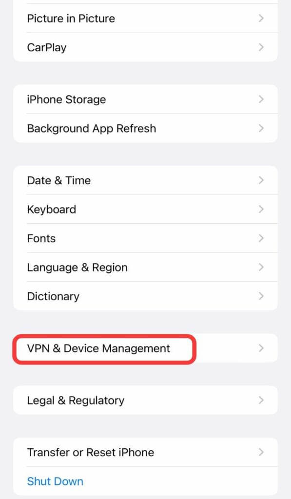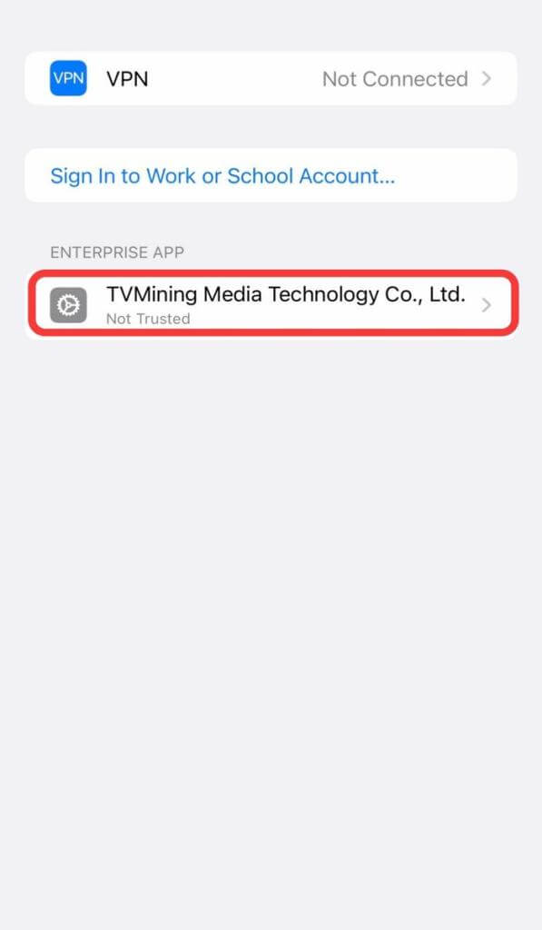 (Tetapan > Umum > Pengurusan Peranti > Apl Dipercayai)