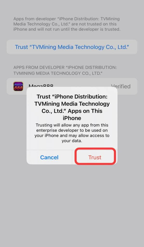 Untuk mega 888 ios, anda perlu melakukan beberapa tetapan amanah selepas muat turun selesai. Berikut ialah arahan untuk menyediakan apl amanah.